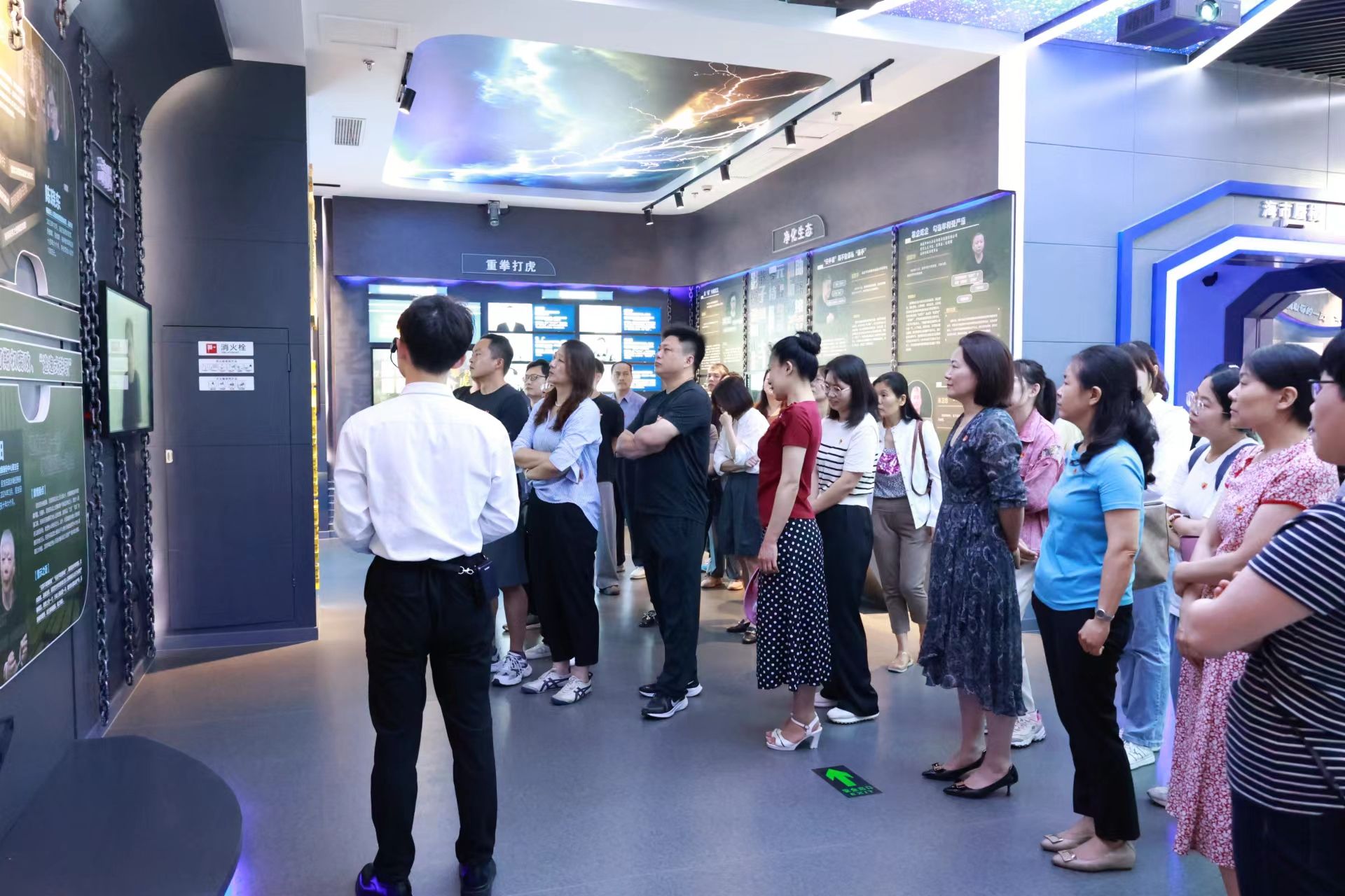 在讲解员的带领下,党员教师们依次参观了“智慧展馆”序厅及“激浊扬清”“正本清源”“上善若水”“勇立潮头”四个主题展厅。展厅以图文并茂的展览、具体情境的模拟体验、真实案例的深入分析、清廉精神的语录展示等多种实境教育形式,将廉政文化、反腐倡廉知识和典型案例有机结合,让党员们在沉浸式的体验中深刻理解了廉洁自律的重要性,增强了对廉政文化的认同感,汲取了廉洁文化的精神力量。
