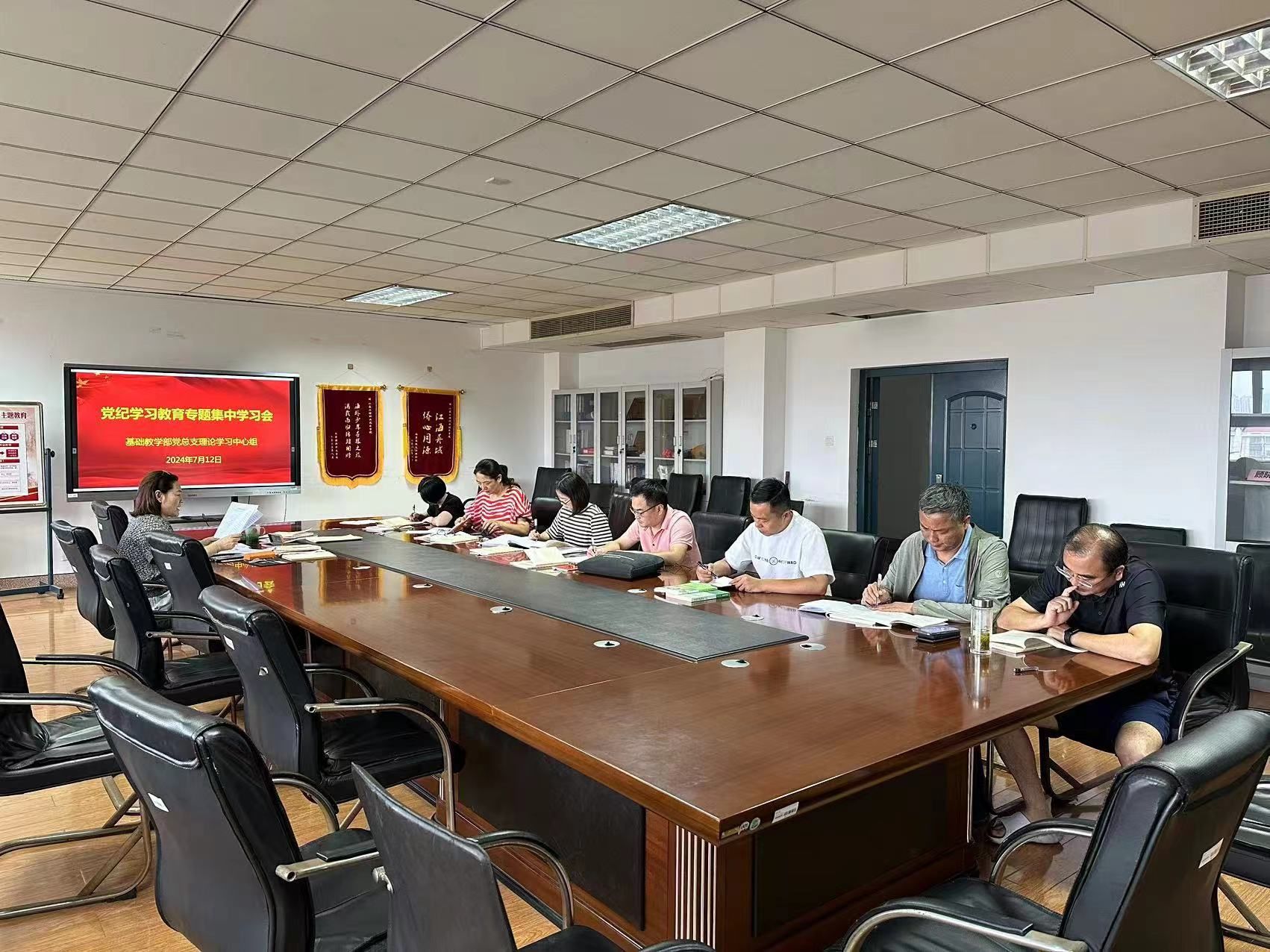 7月12日上午,基础教学部党总支在致用楼612会议室召开理论学习中心组党纪学习教育专题集中学习会,会议由党总支书记顾晓梅主持,理论学习中心组成员和各支部书记参加了学习。