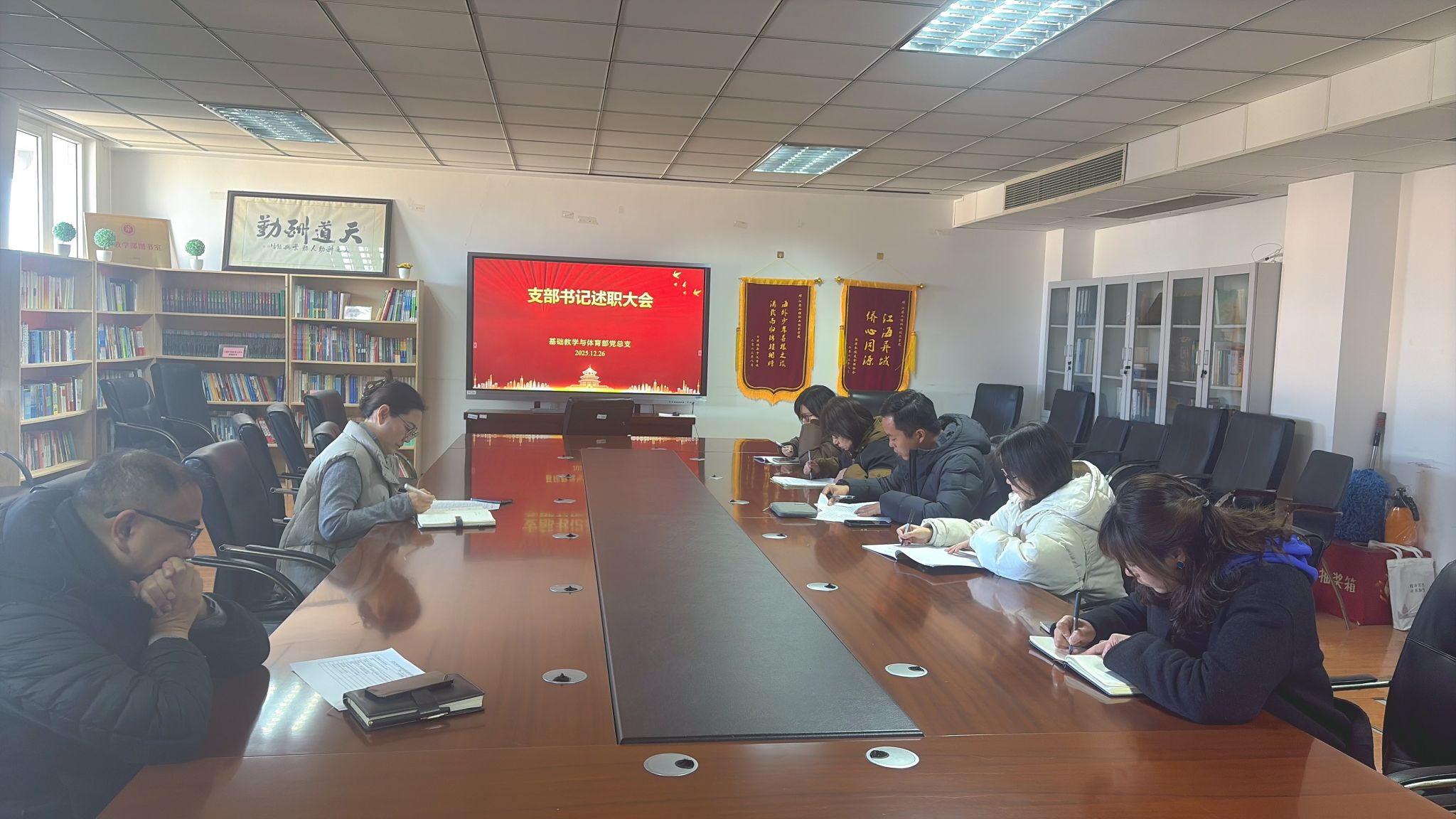 2025年12月26日下午,基础教学与体育部党总支在致用楼612会议室召开2025年度支部书记述职大会。党总支委员、各支部书记及副书记参会,会议由党总支书记顾晓梅主持。