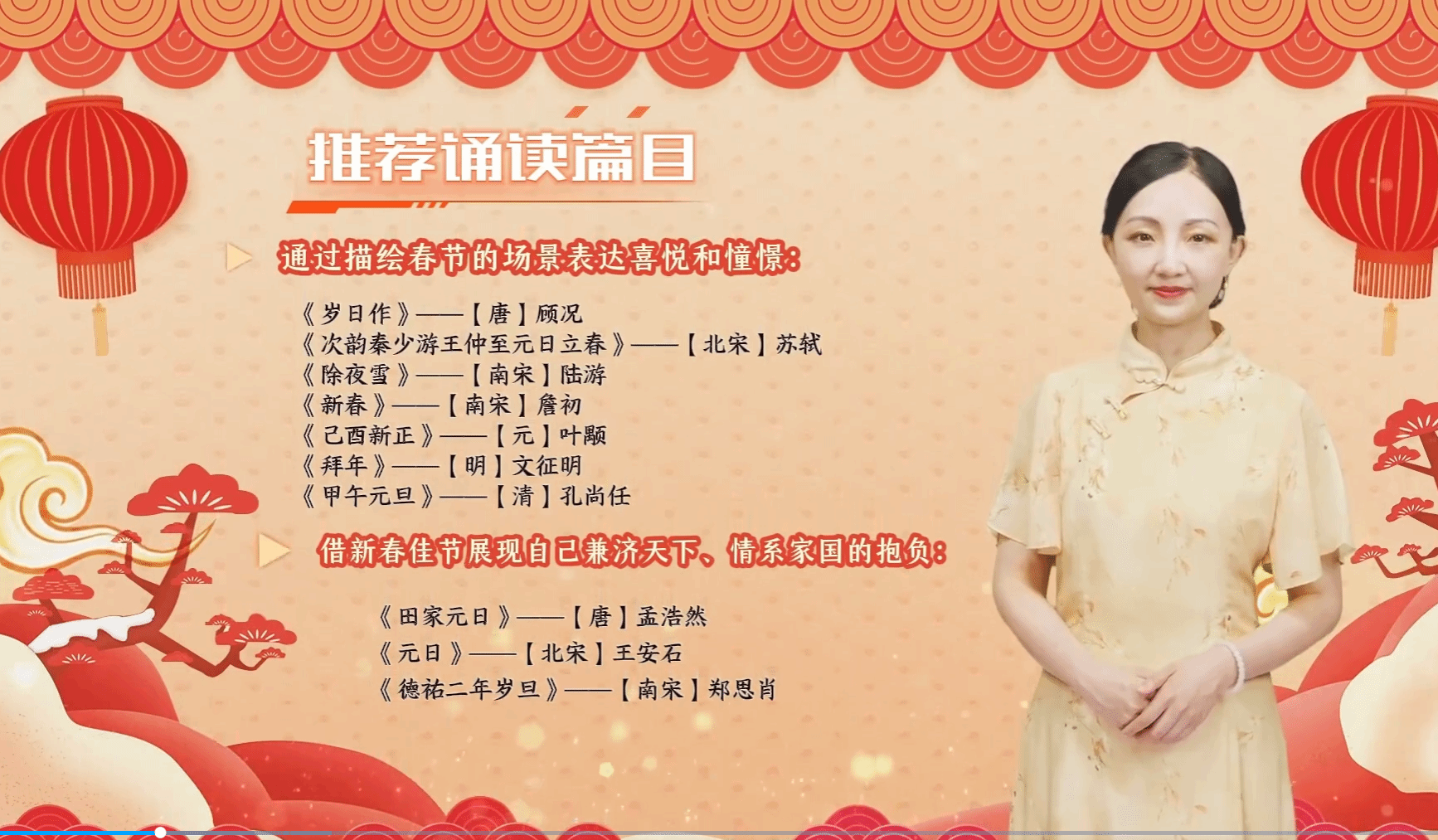 《光阴流转情不移——中国传统节序诗词之美》将中国古典诗词与传统节日相结合,以“涵育审美能力、厚植人文情怀”为总体目标,选择春节、元宵、清明、端午、七夕、中秋、重阳、冬至这八个传统节日的节序诗词作为教学内容,并按照审美情感创设了“喜”“敬”“恋”“忆”四个情境。每个情境均采用“寻-品-悟-传”的教学步骤,将情境教学法、诵读法、比较法、讨论法、实践法贯穿其中,既凸显了中华传统节日“因天人相应而立,蕴人文精神而丰”的独特内涵,又引导学生热爱生活、与诗为伴、向美而行。课程中还融合了外景教学、名家示范、古诗吟唱等多种手段,本校参加2024年江苏省“中华经典诵读大赛”的获奖大学生和留学生也分别展示了《青玉案·元夕》和《生查子·元夕》的诵读,这是古典诗词育人的具象化成果,充分体现了诗词教学对学生的美育浸润功能。