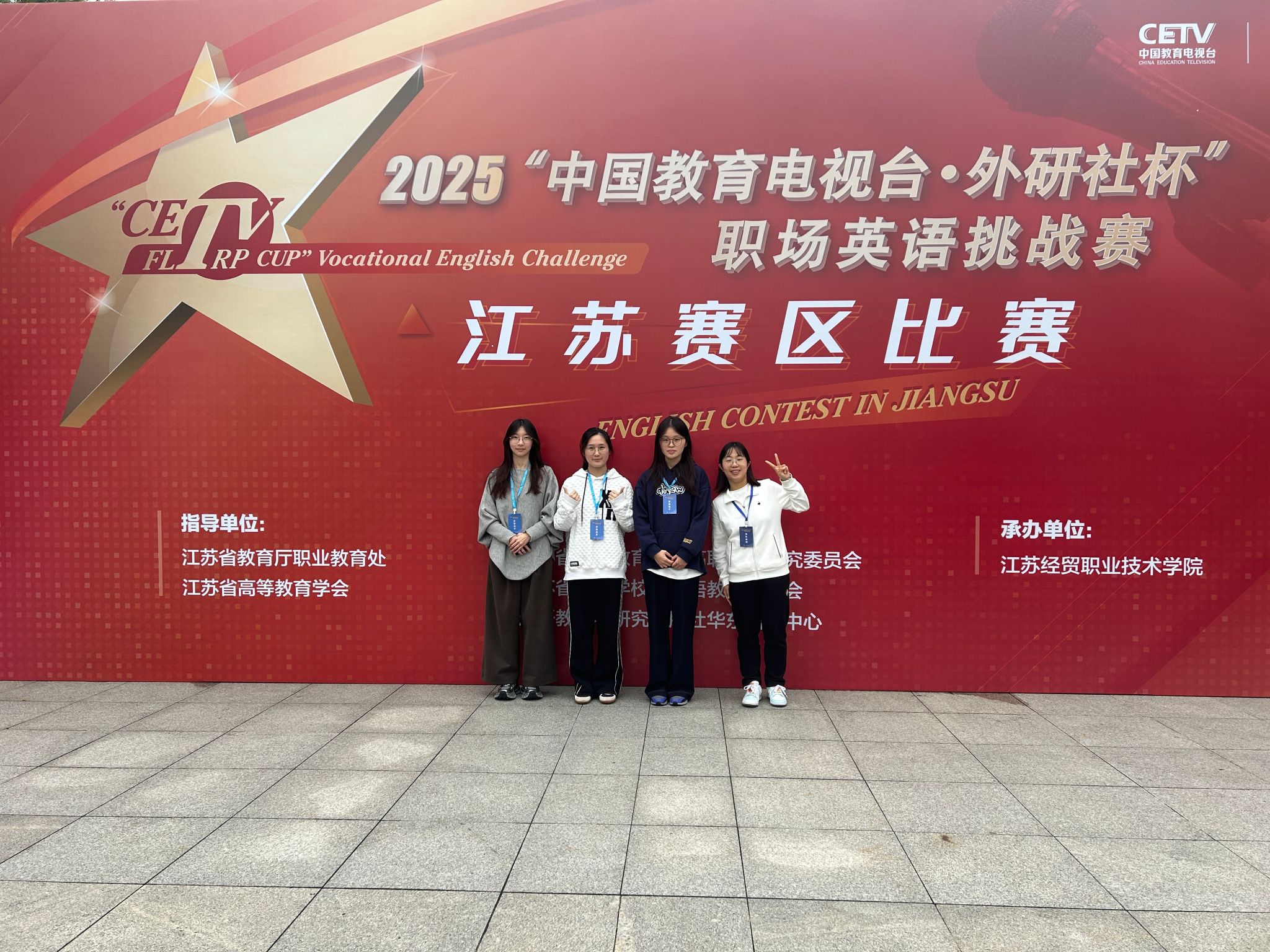 11月9日,2025“中国教育电视台·外研社杯”职场英语挑战赛江苏赛区写作比赛在江苏经贸职业技术学院顺利落下帷幕。来自 65 所高职院校的 187 名选手同场较量,参加了写作比赛。我校基础部姜峰老师指导的航交学院学生杨雯、沈邦华老师指导的建工学院学生于焱茹、魏念老师指导的建工学院学生钱锦,均凭借出色表现斩获写作比赛二等奖。