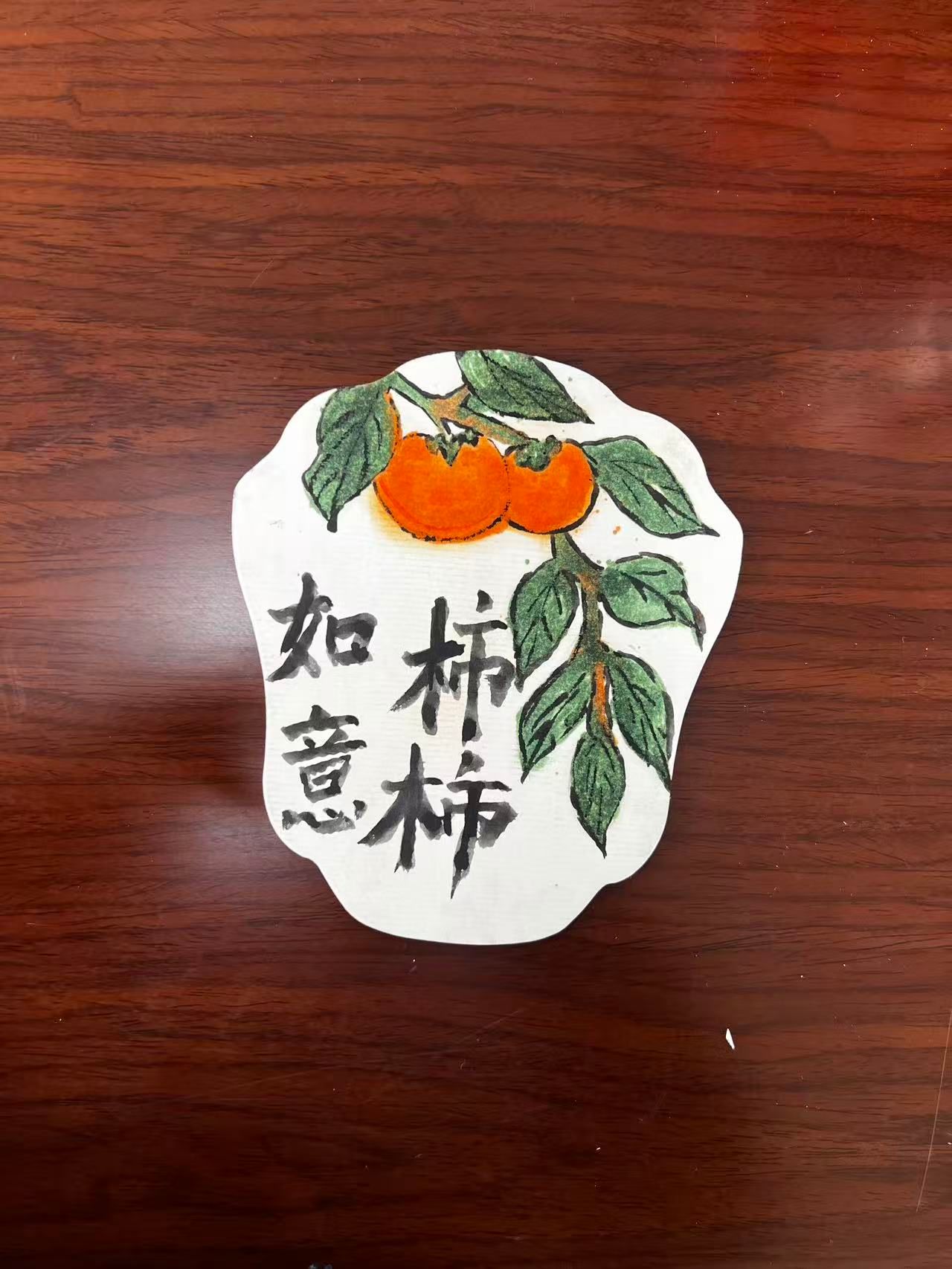 活动现场,十余位国学爱好者有的以暖橙色绘就饱满的柿子,搭配“柿柿如意”的书法题字,将中式吉祥寓意凝于扇面;有的以粉紫渐变色铺就背景,写下“最靓的仔”的潮流文字,在传统载体上书写青春语态;还有人融入《哪吒》“灵珠与魔丸”的影视元素,以红蓝撞色扇面搭配“所愿皆如意”的期许,让团扇成为年轻态度的独特注脚。从提笔勾勒线条,到晕染色彩、题字落款,再到系上流苏完成最后的装饰,大家在沉浸式创作中触摸到了团扇这一非遗技艺的温度。活动尾声,同学们纷纷手持各自的作品合影留念。